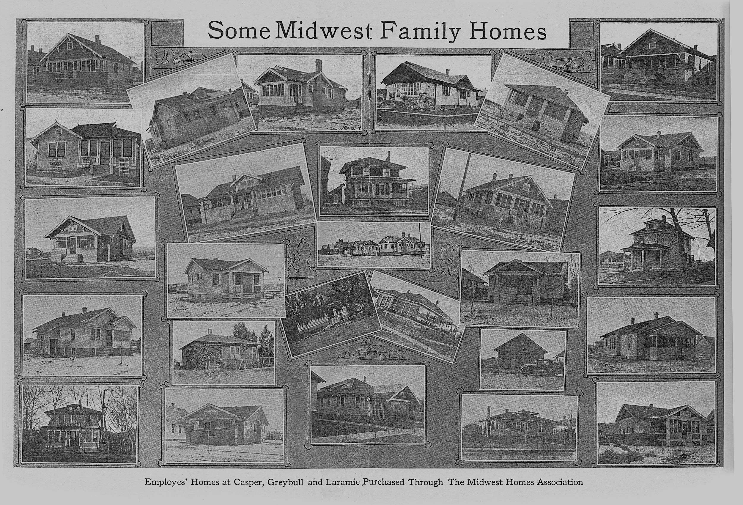 “Due to the fact that housing conditions were almost impossible in Casper, Laramie and Greybull, and it was imperative, if the Midwest Refining Company wanted to keep its men on the job, to help them produce homes, the Midwest Homes Association was organized by the department of industrial relations about a year and a half ago. The object of the association was to loan money to the employes in these three towns, to enable them to either buy or build homes. The operations of the association were of necessity confined to the three points, as conditions were considerably worse than in other localities.