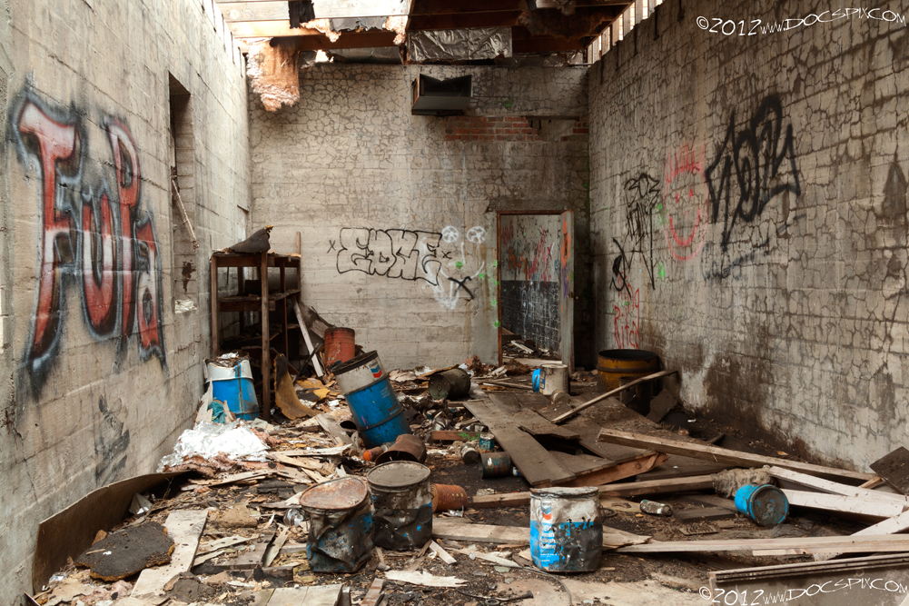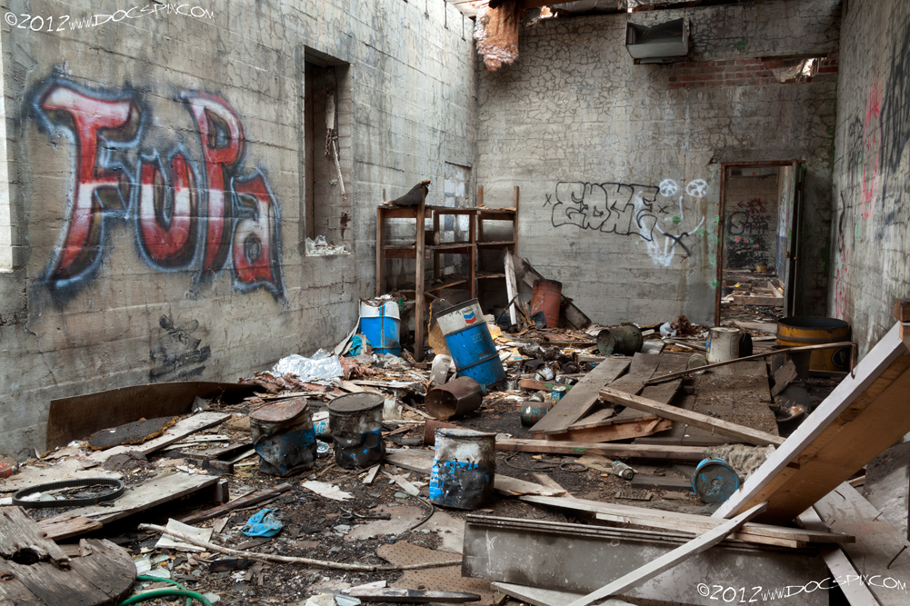 Looking east in the middle building. The inner door was probably added during construction of the U.S. Yttrium building.