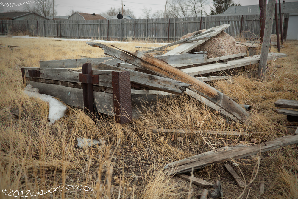 The southern third of the site had most of its junk, debris and general trash picked up in late May of 2012 by the Wyoming Conservation Corps, (more information about the WCC can be found here: http://www.uwyo.edu/reslife-dining/wcc/). In addition to the old fence posts that lined Cedar Street; there were several wooden truck beds, workbenches, pallets, old chairs, and a myriad of other debris scattered around the area. Most of the images on this page were made prior to the clean up; most in the months of March, April and May. The WCC cleaned up the area over a three day period starting on or about 30th May, 2012. The “greenest” images were made the weekend prior to the clean up.