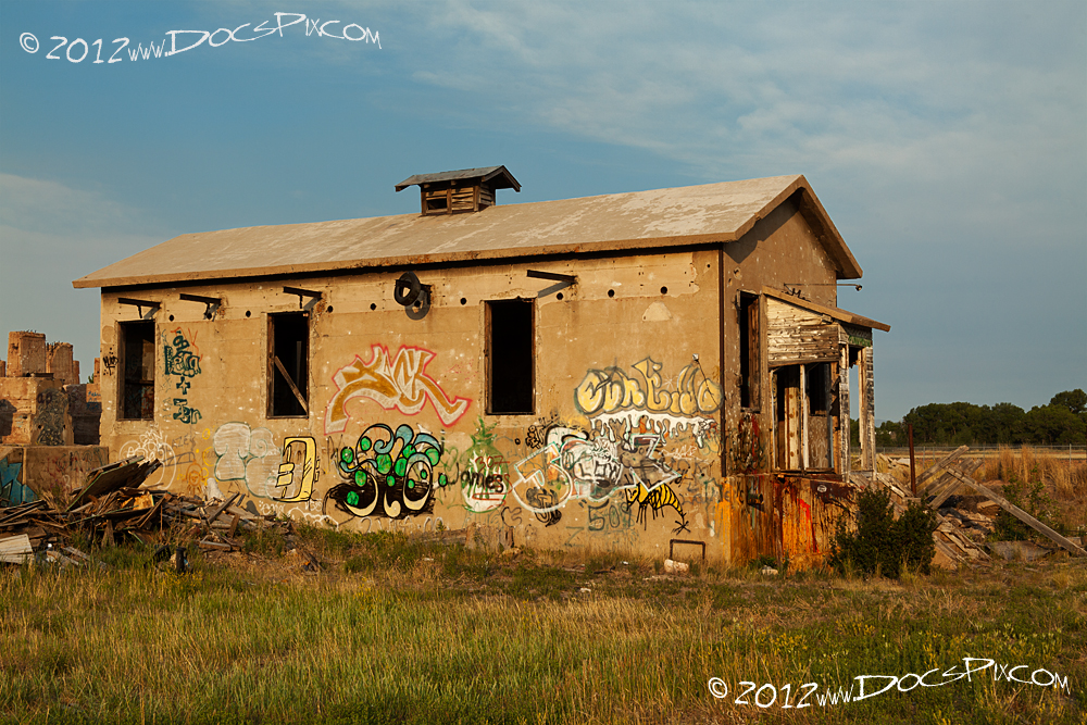 There are only two buildings on the 4.6-acre site that still have their roofs intact; these would be what was probably the one of the main control buildings for the refinery, (later used as the pilot plant for United States Yttrium); the building on the east side was probably a control building for the Standard Oil of Indiana operations. These assertions are nothing more than an educated guess, I have been unable to locate any of the original plans or any information about the original lay out of the site.